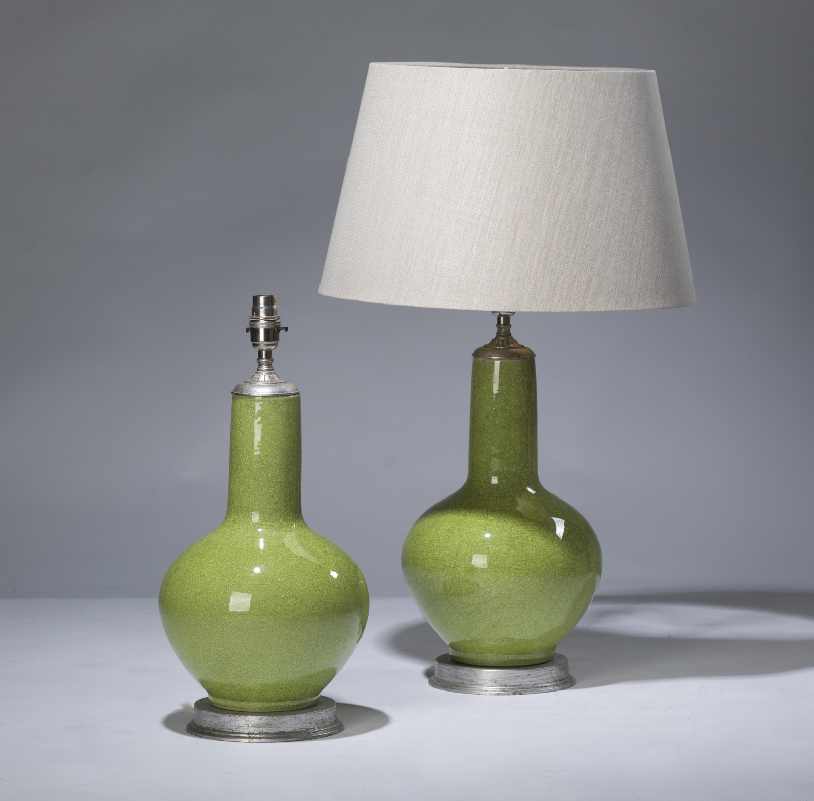 Single Small Green Ceramic Lamps On A Distressed Silver Leaf Base
