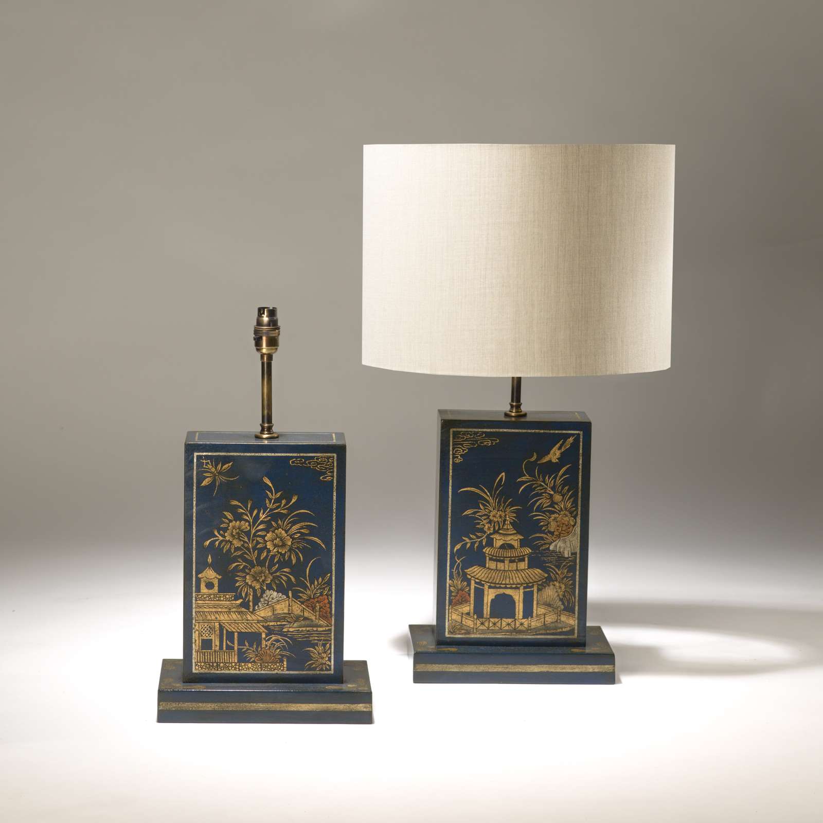 Pair Of Medium Hand Painted Chinese Navy Wooden Lamps