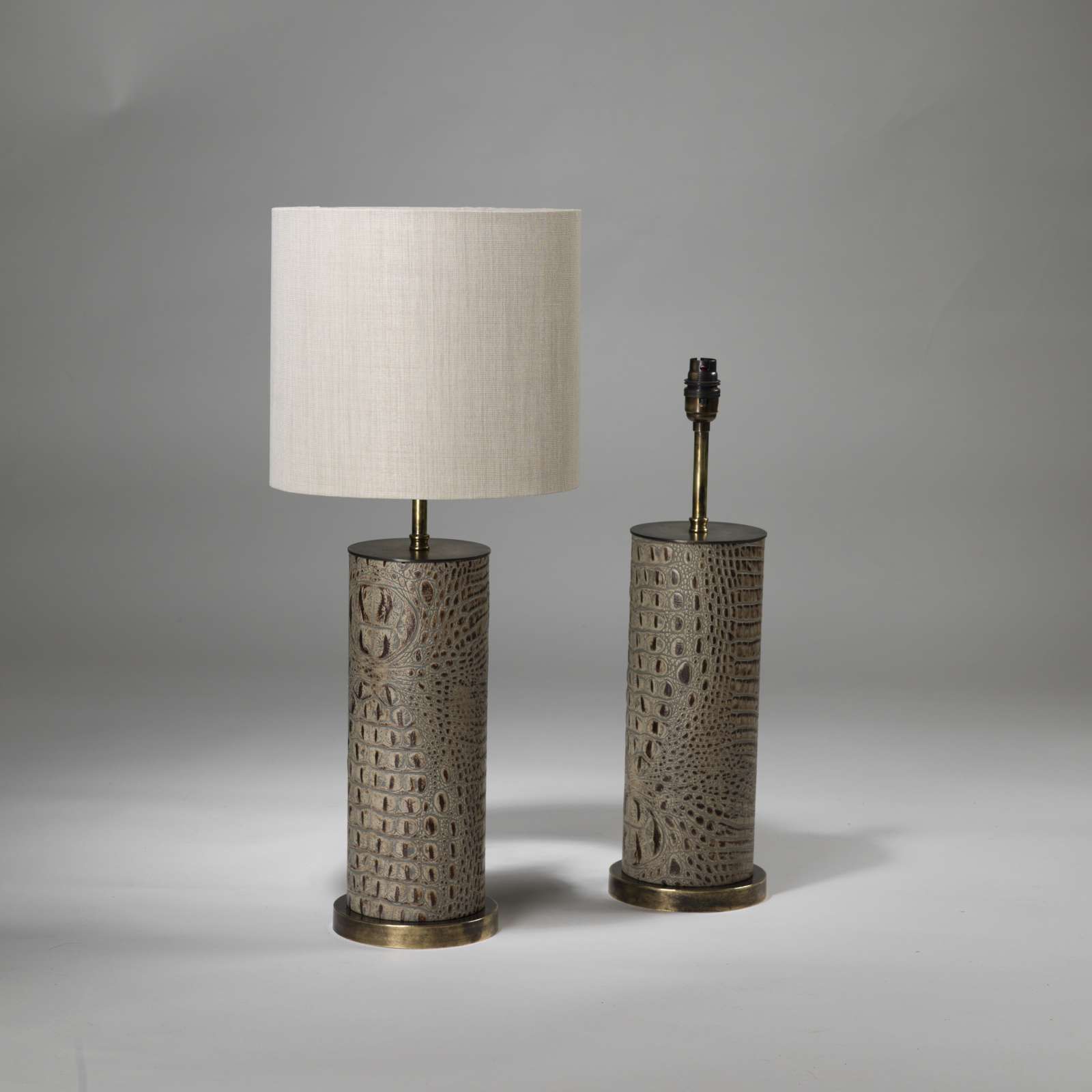 Pair Of Small Cream Leather 'crocodile' Lamps On Brass Bases