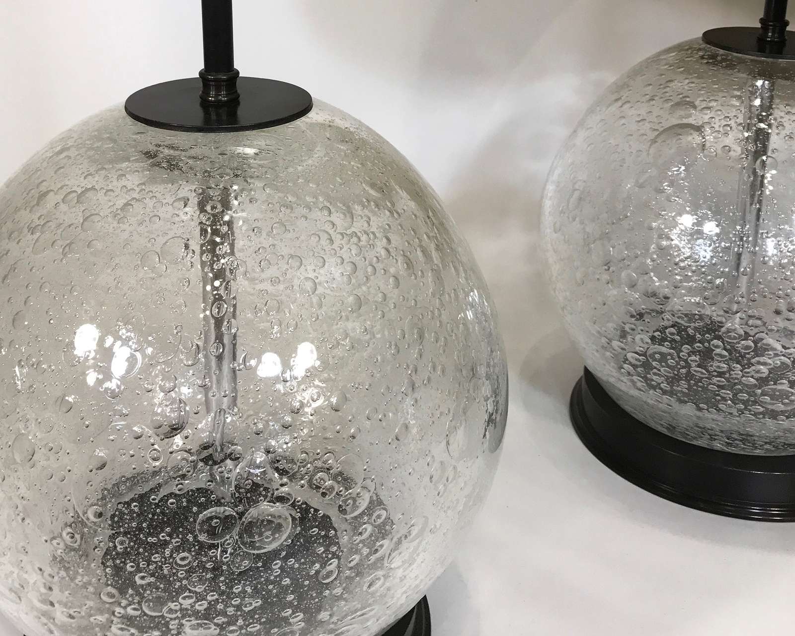 Pair Of Medium Clear Glass Bubble Lamps On Brown Bronze Bases