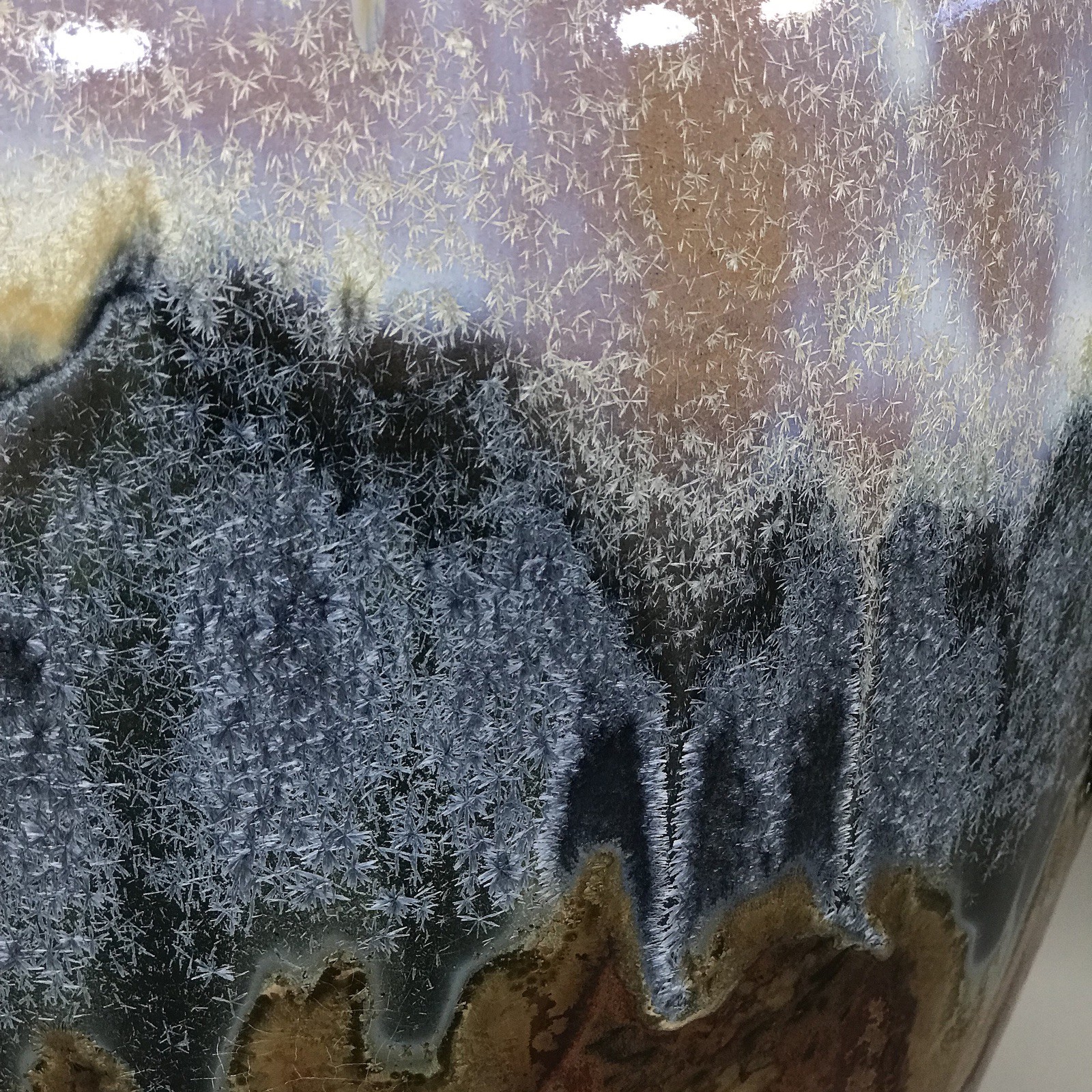 Pair Of Large Hand Made Brown Ceramic Lamps With Amazing Iridescent Glaze On Antique Brass Bases