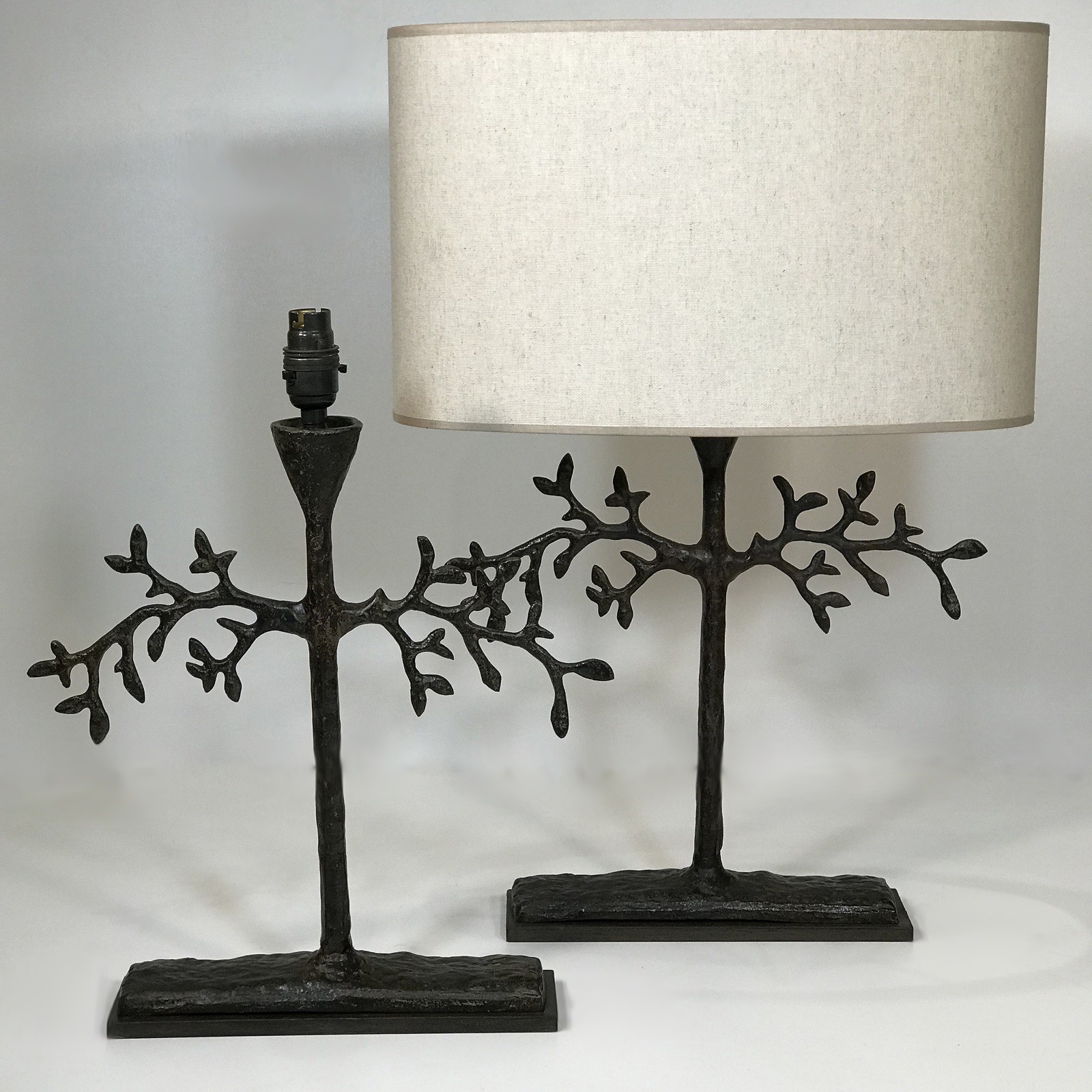 Pair Of Small Metal Olive Tree Lamps In Brown Bronze Finish