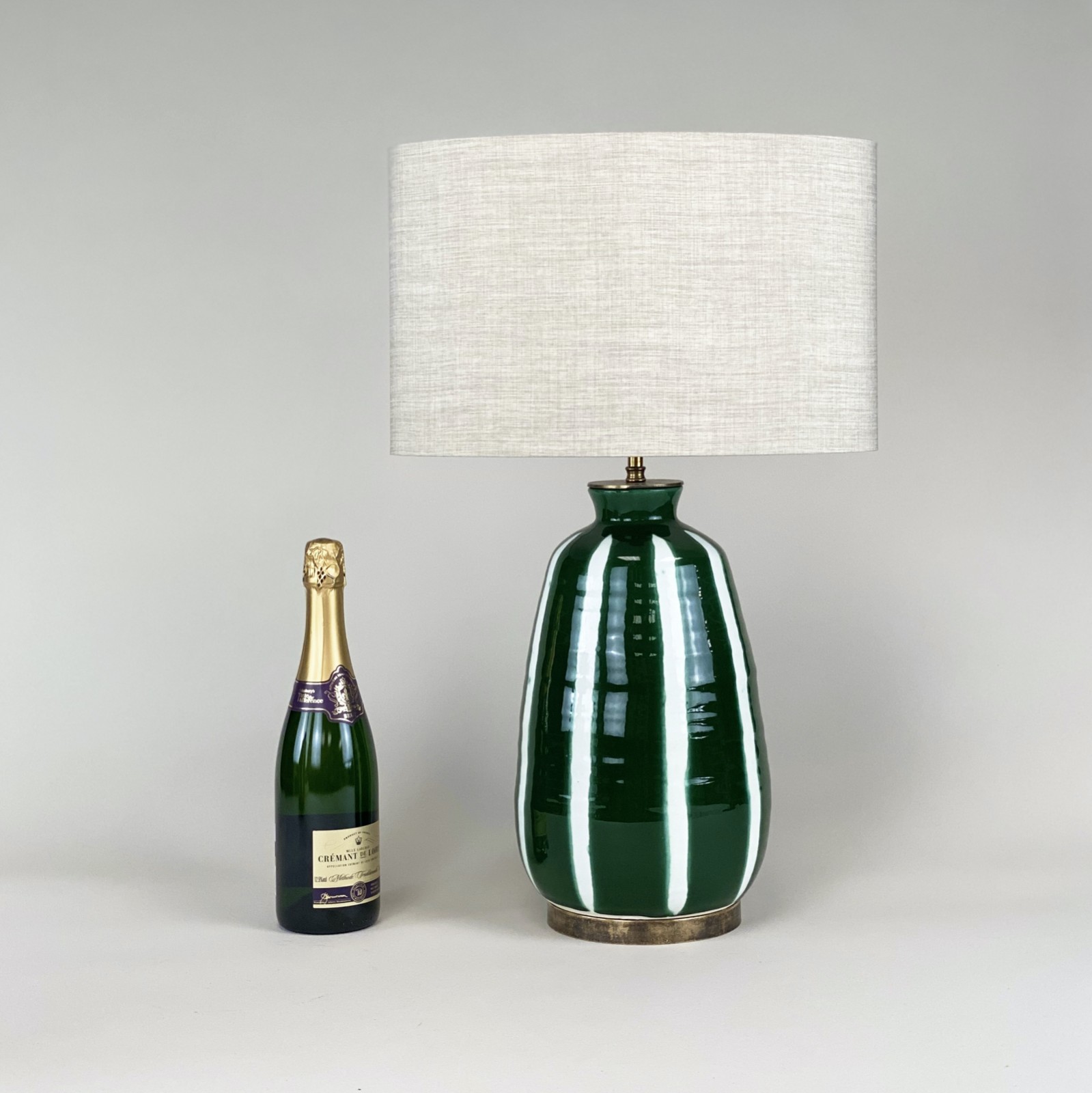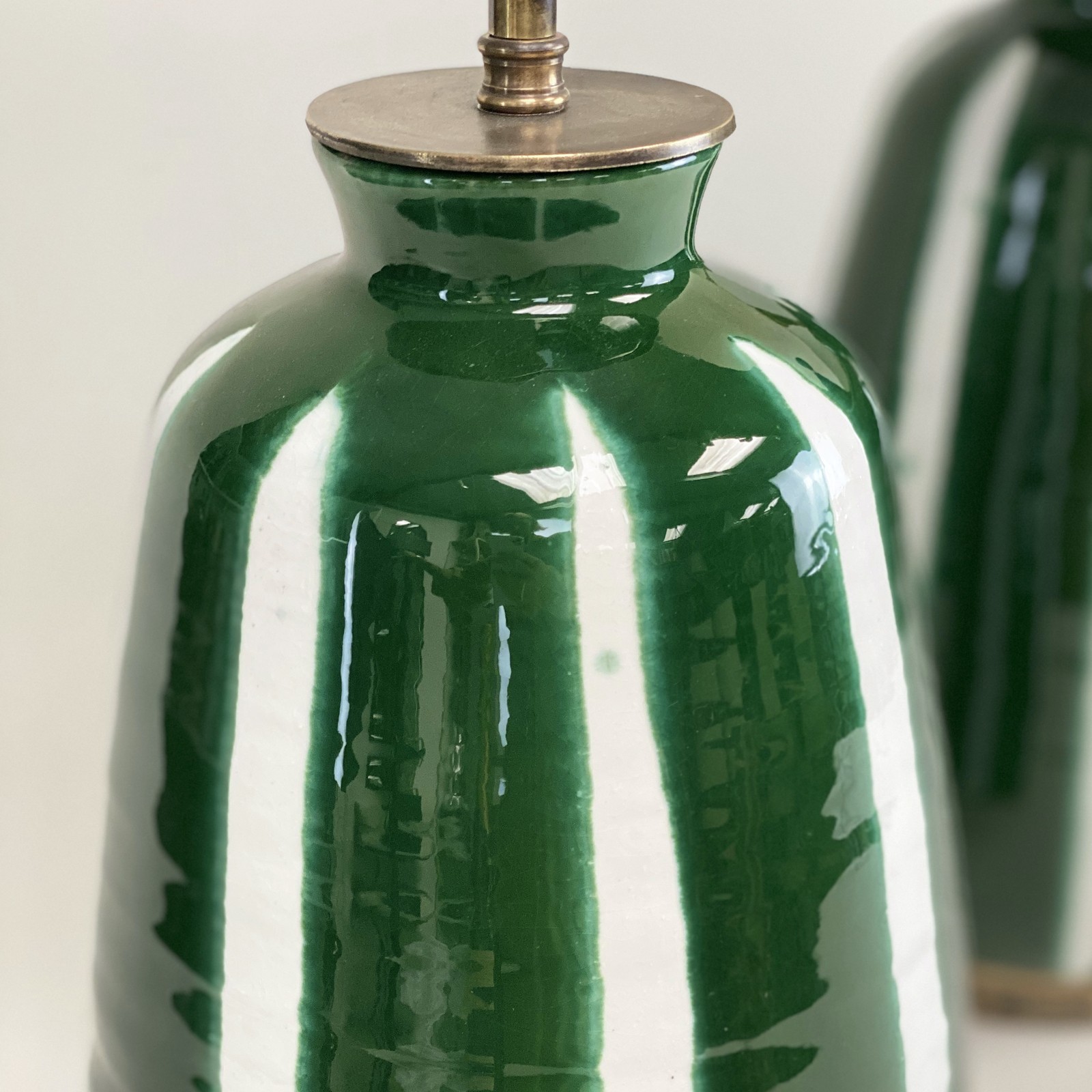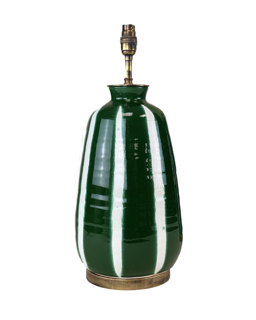 Medium Green Stripe Ceramic Lamps With Antique Bases