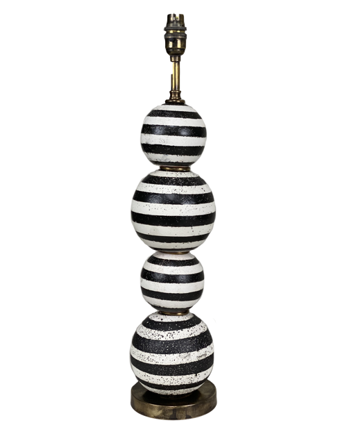 Pair Of Black And White 'stripe' Stacked Ceramic Ball Lamps With Antique Brass Bases