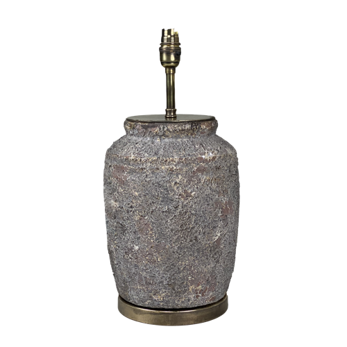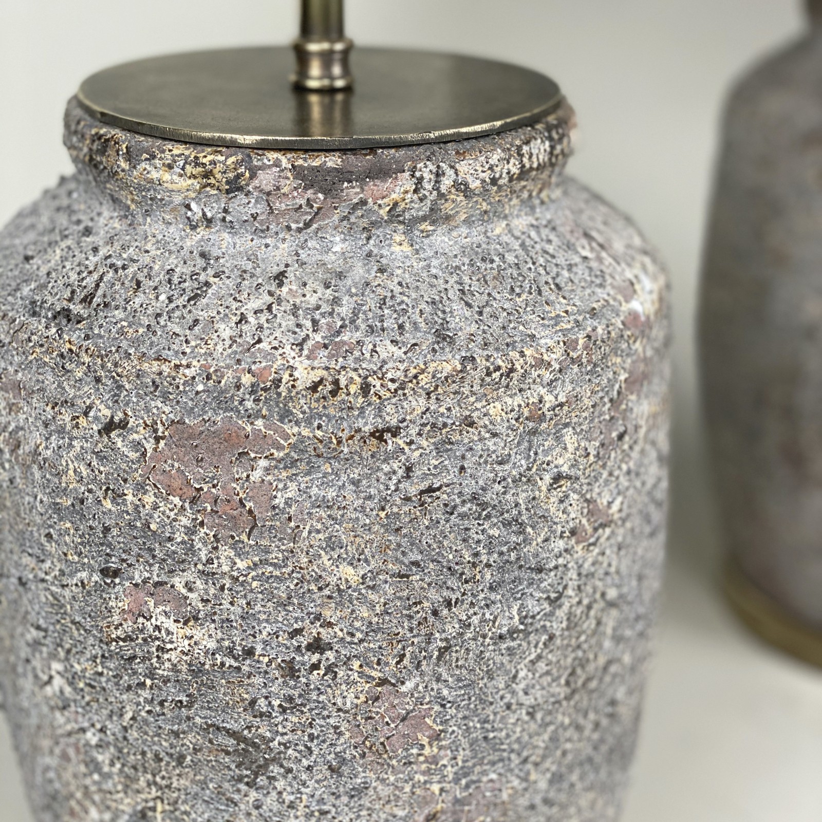 Pair Of Small Textured Pink Grey Ceramic Lamps On Antique Brass Bases