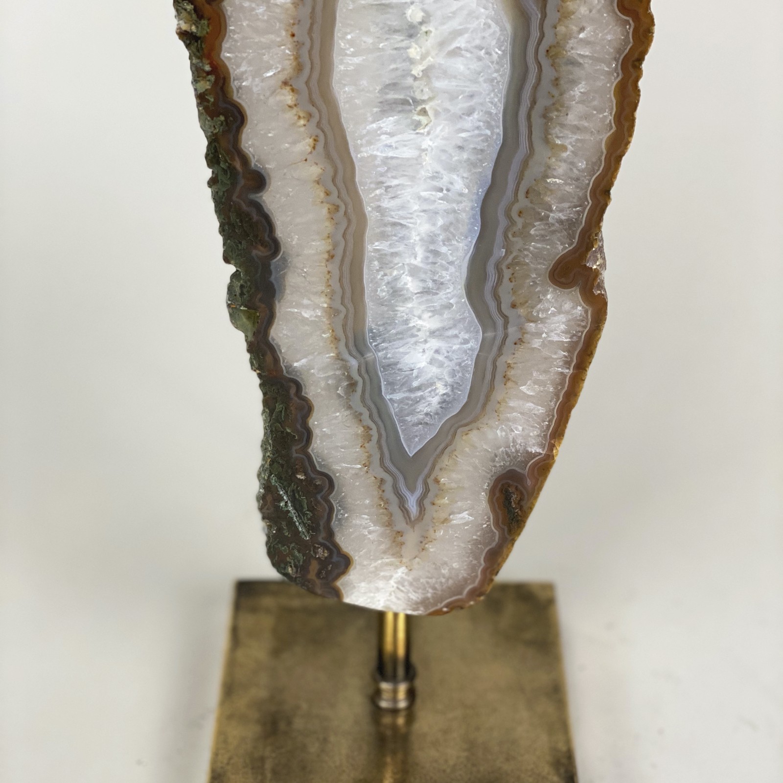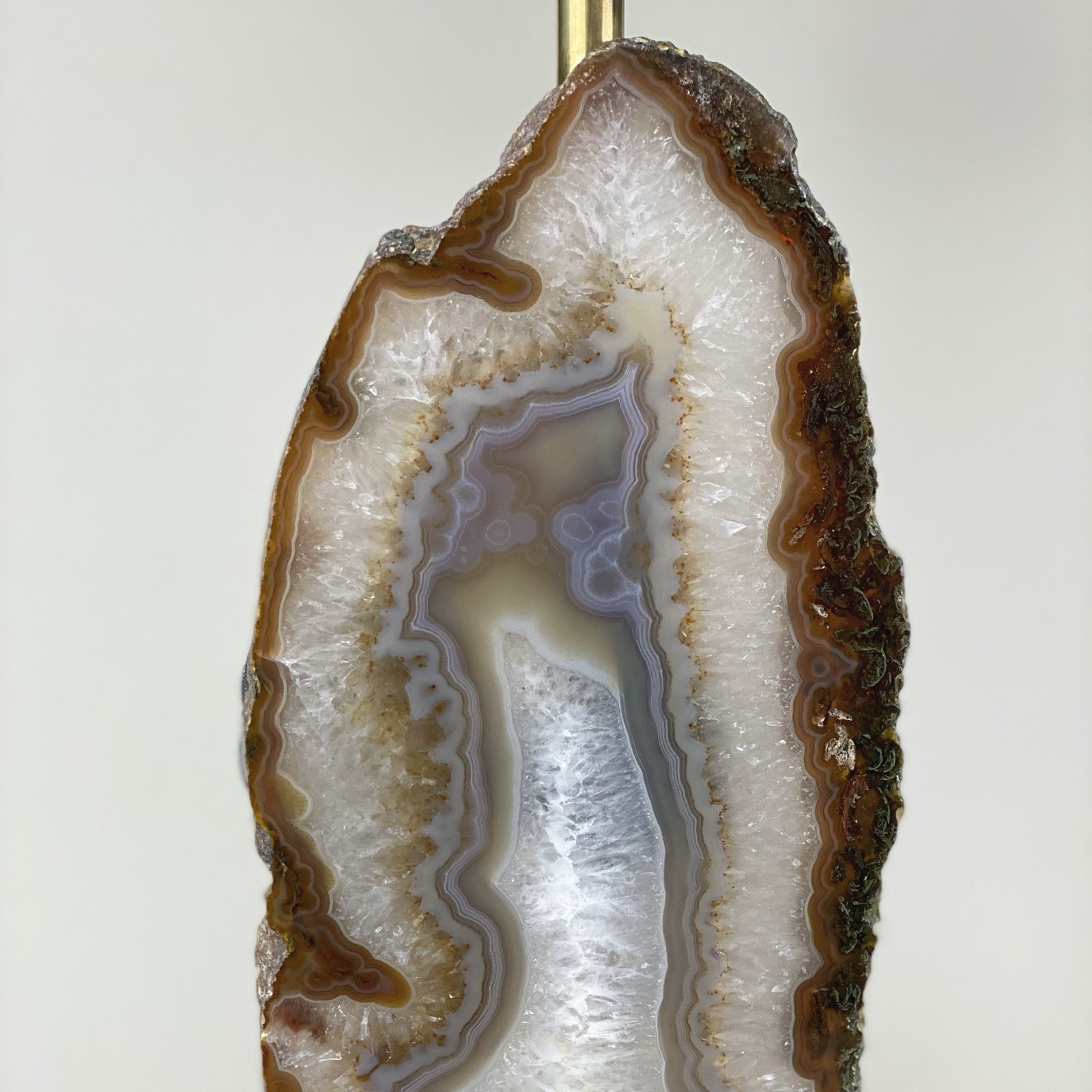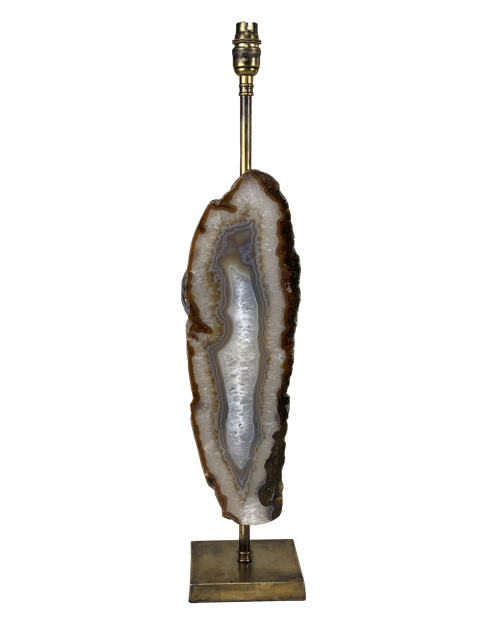Pair Of Medium Brown Tall Slim Single Agate Disc Lamps On Antique Brass Bases