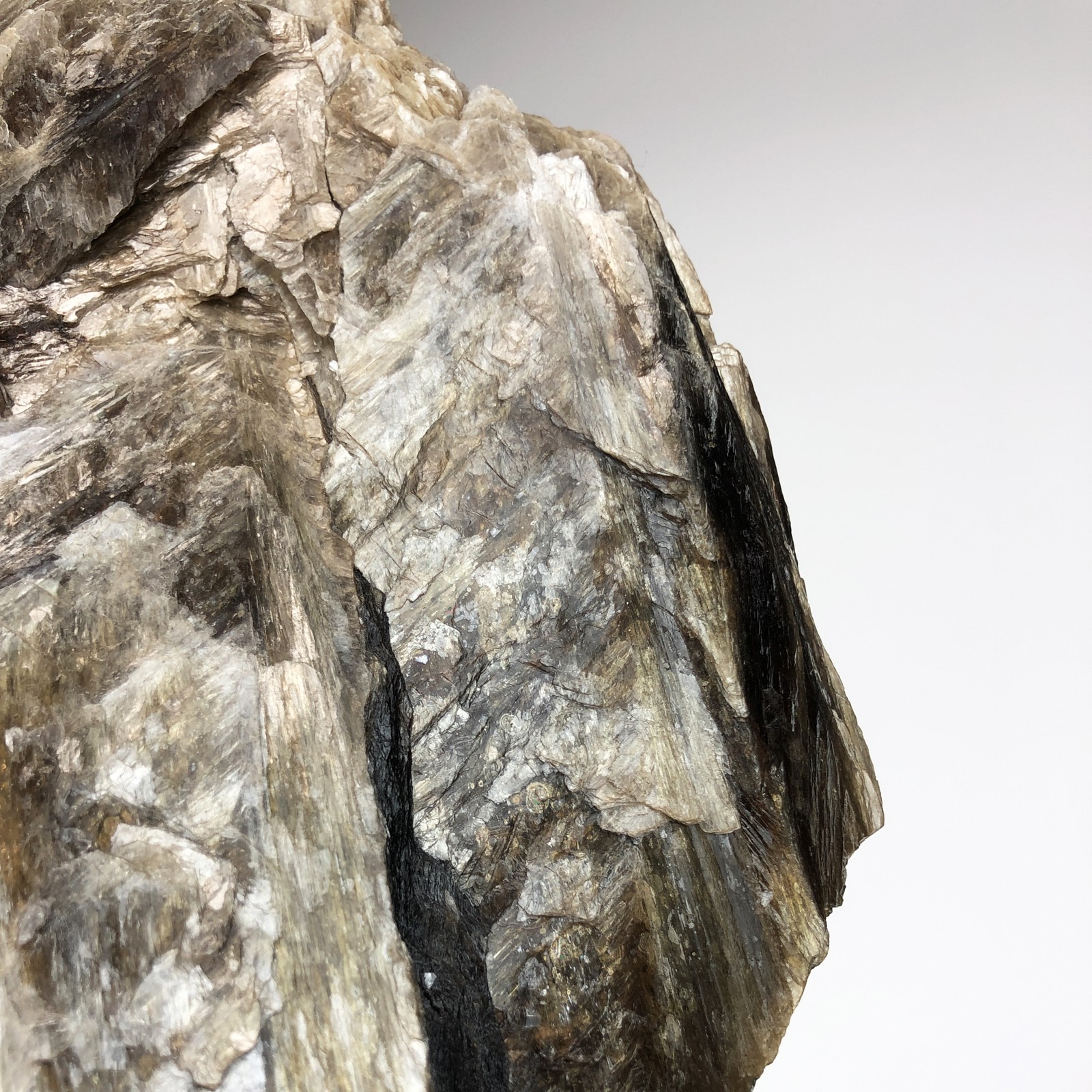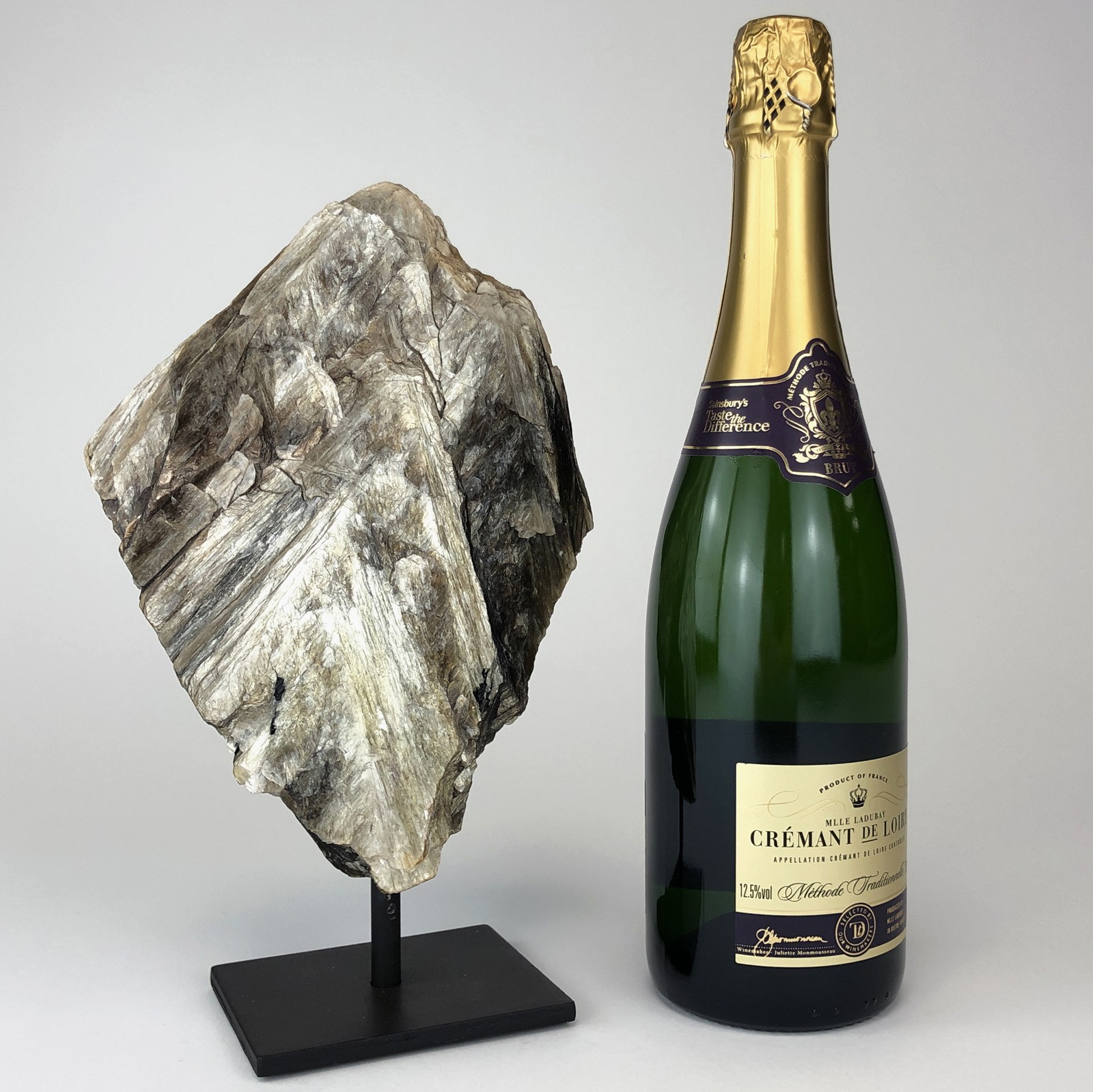 Silver Mica Mineral on Brown Bronze Stand