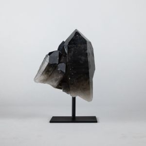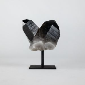 Black Tourmaline Mineral on Brown Bronze Stand