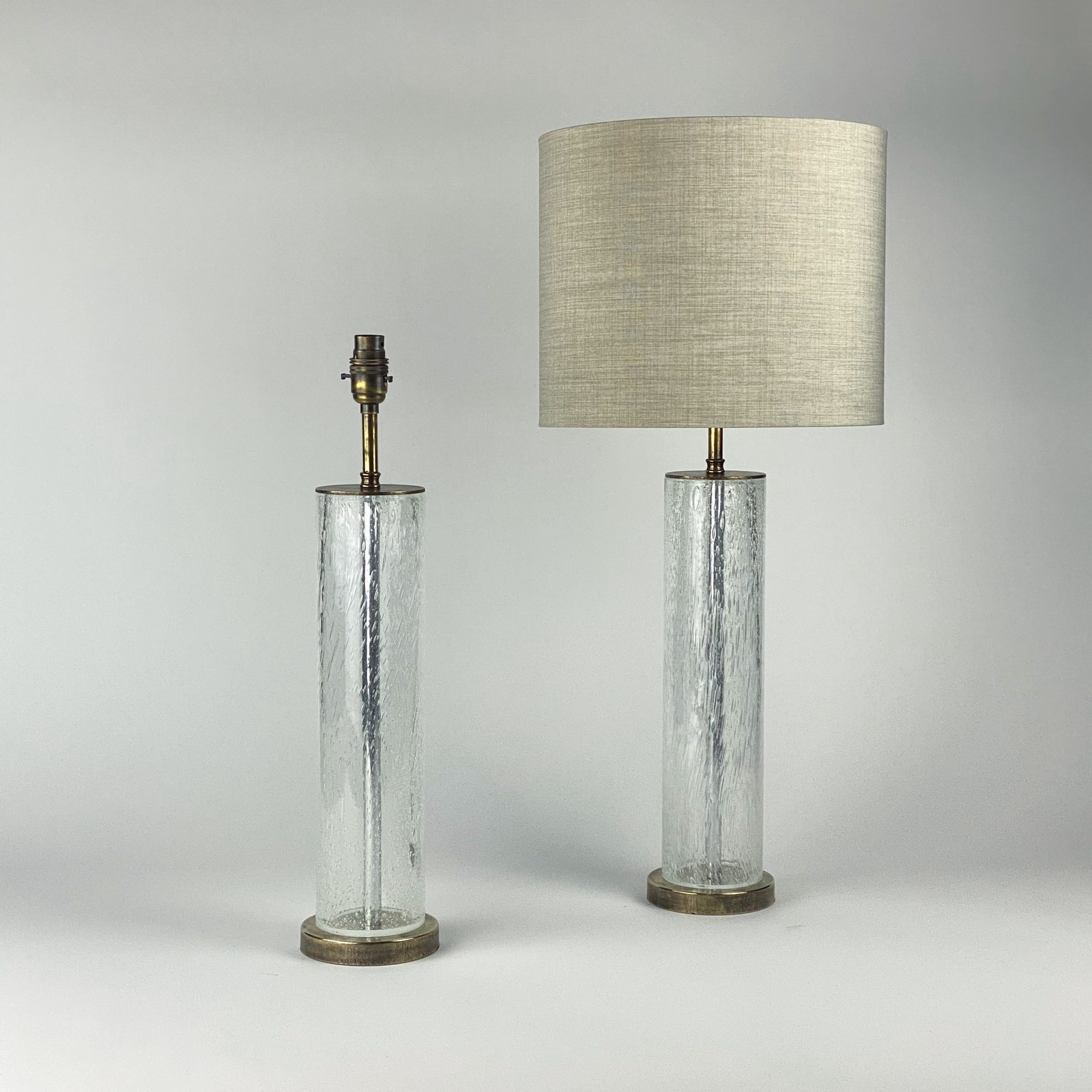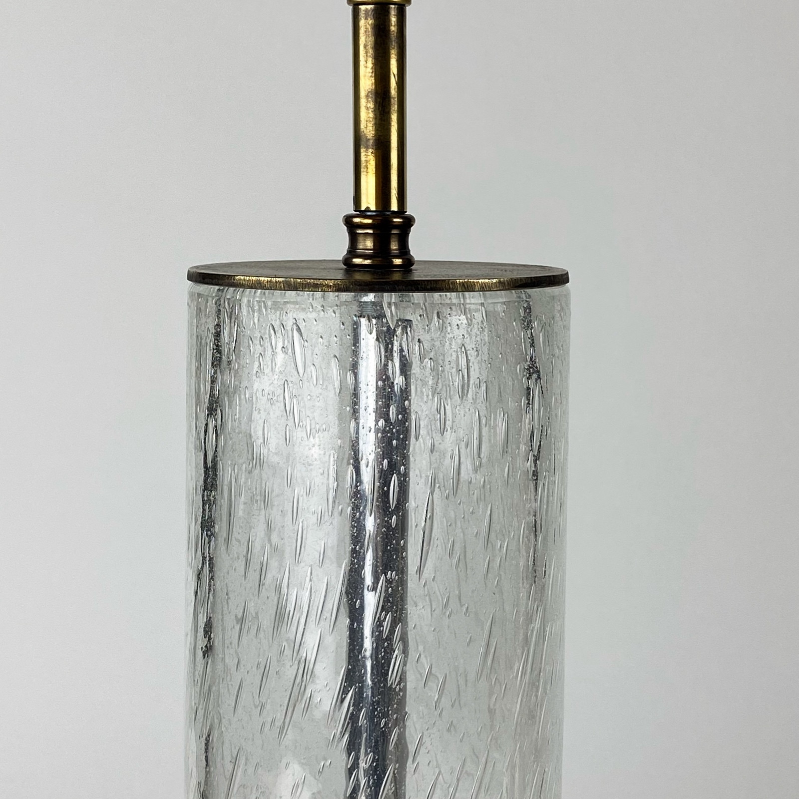 Pair Of Small Clear Bubble Glass Cylinder Lamps On Antique Brass Bases