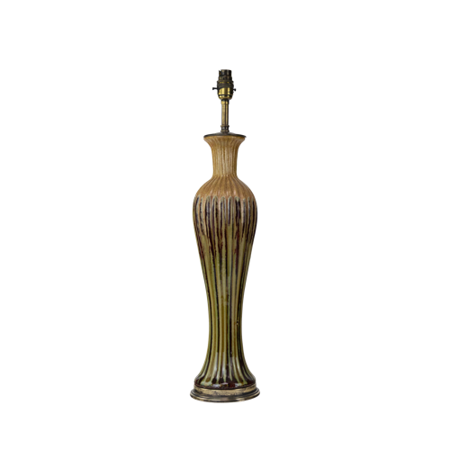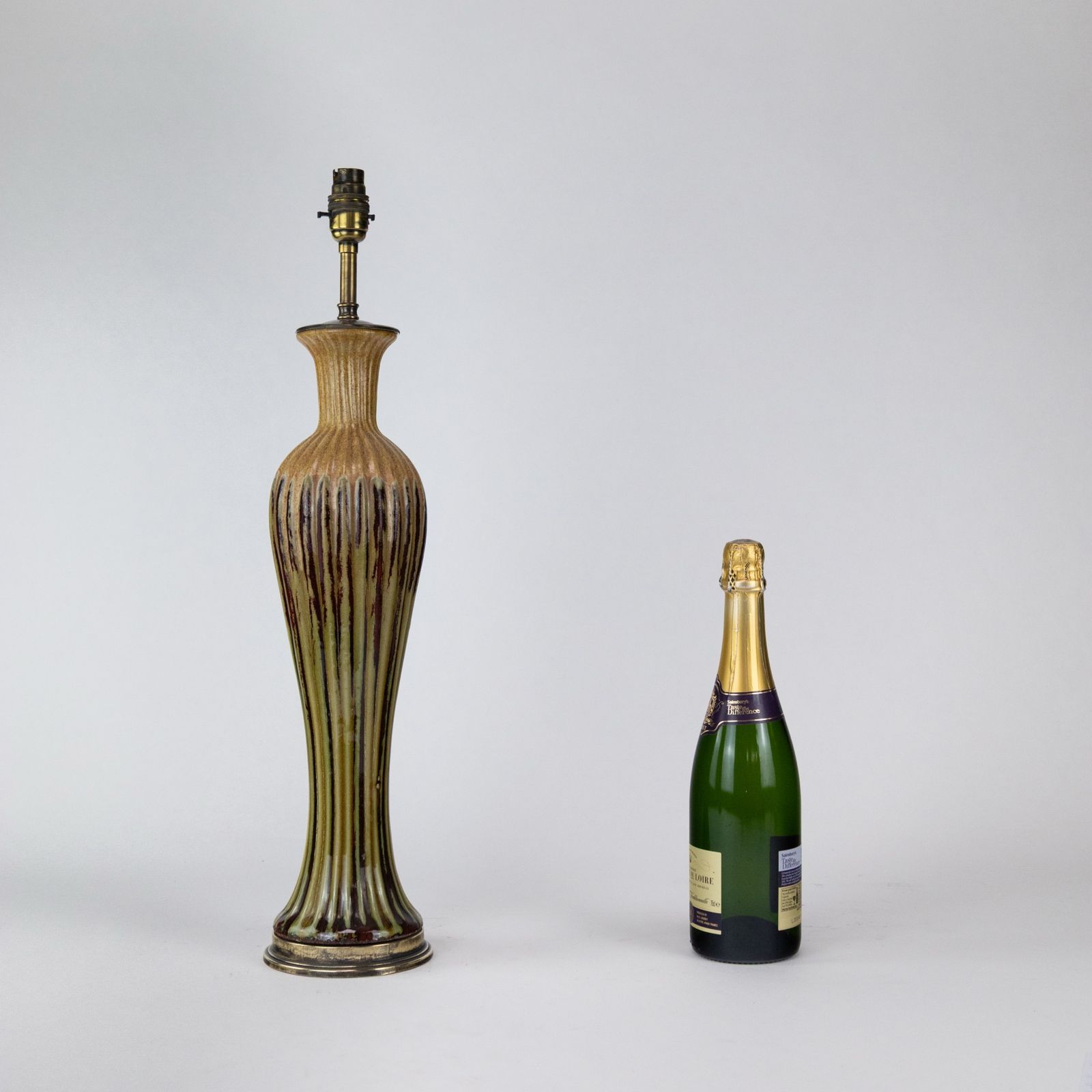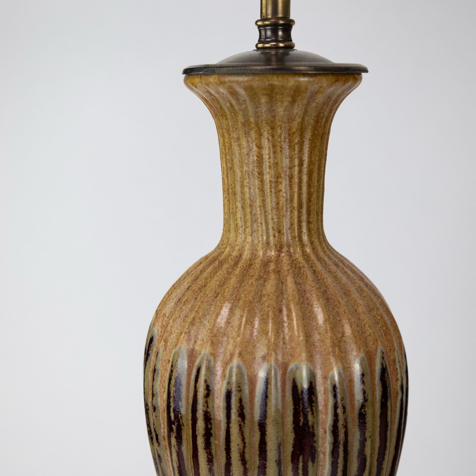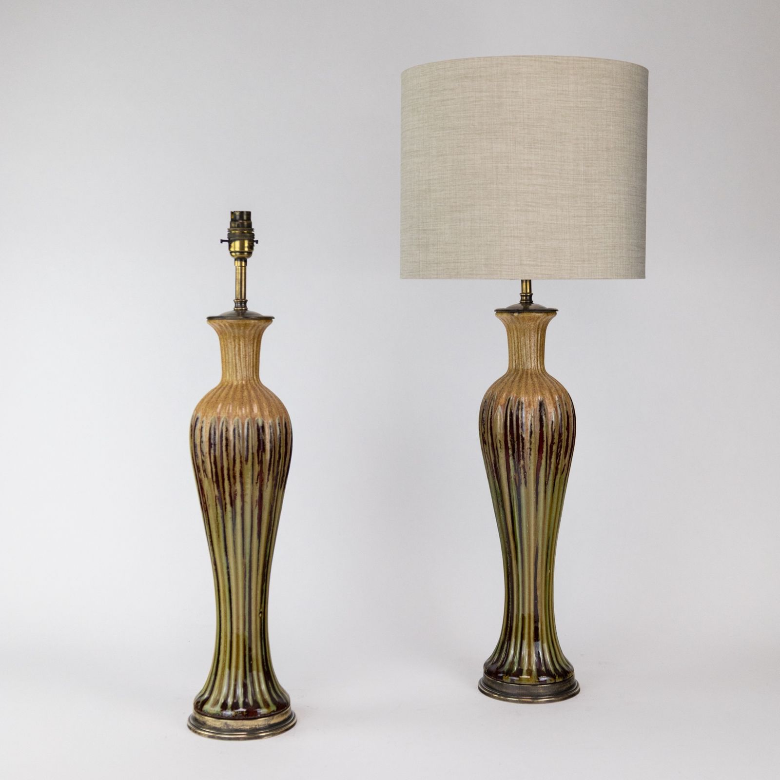 Pair of Mid Century French Ceramic Lamps on Antique Brass Bases