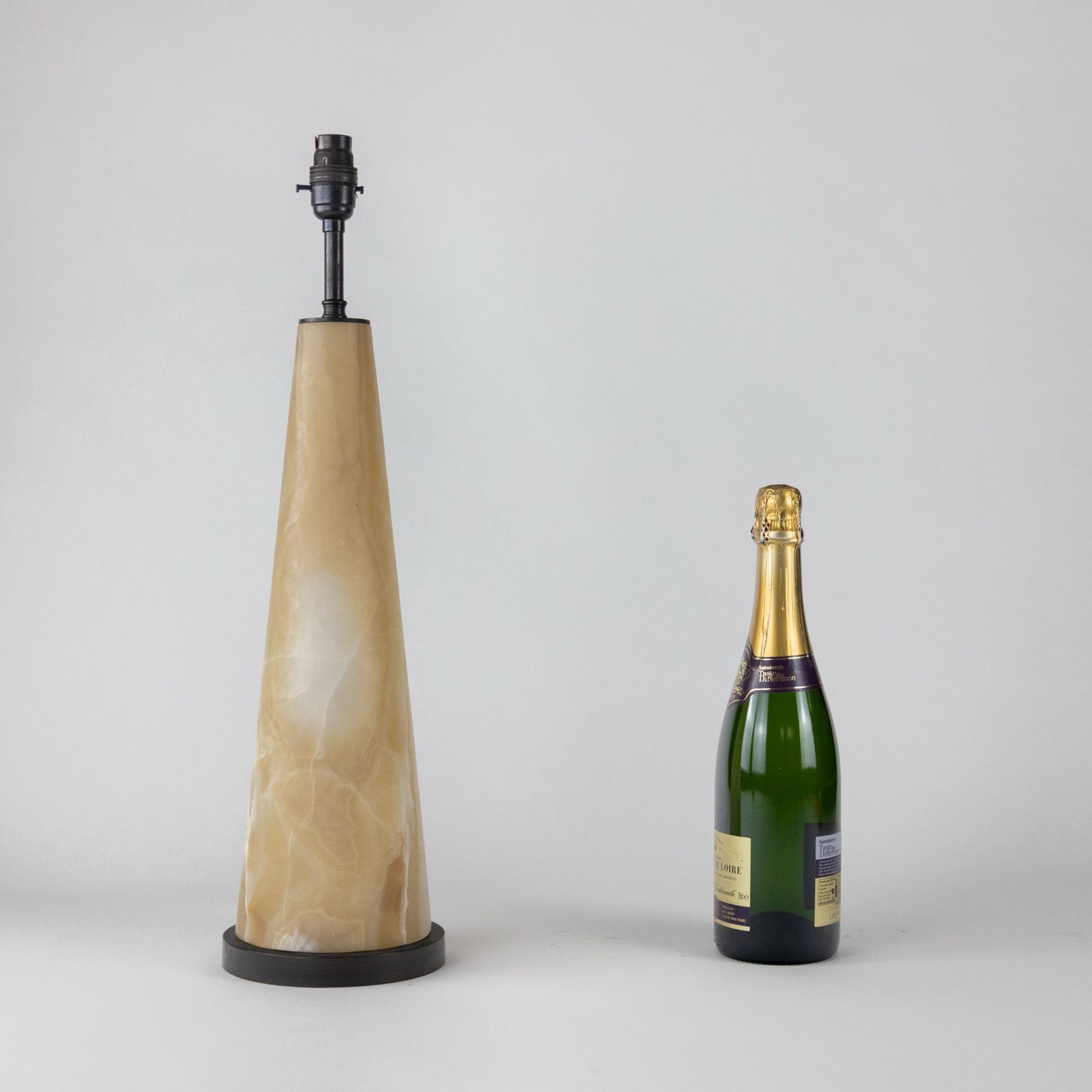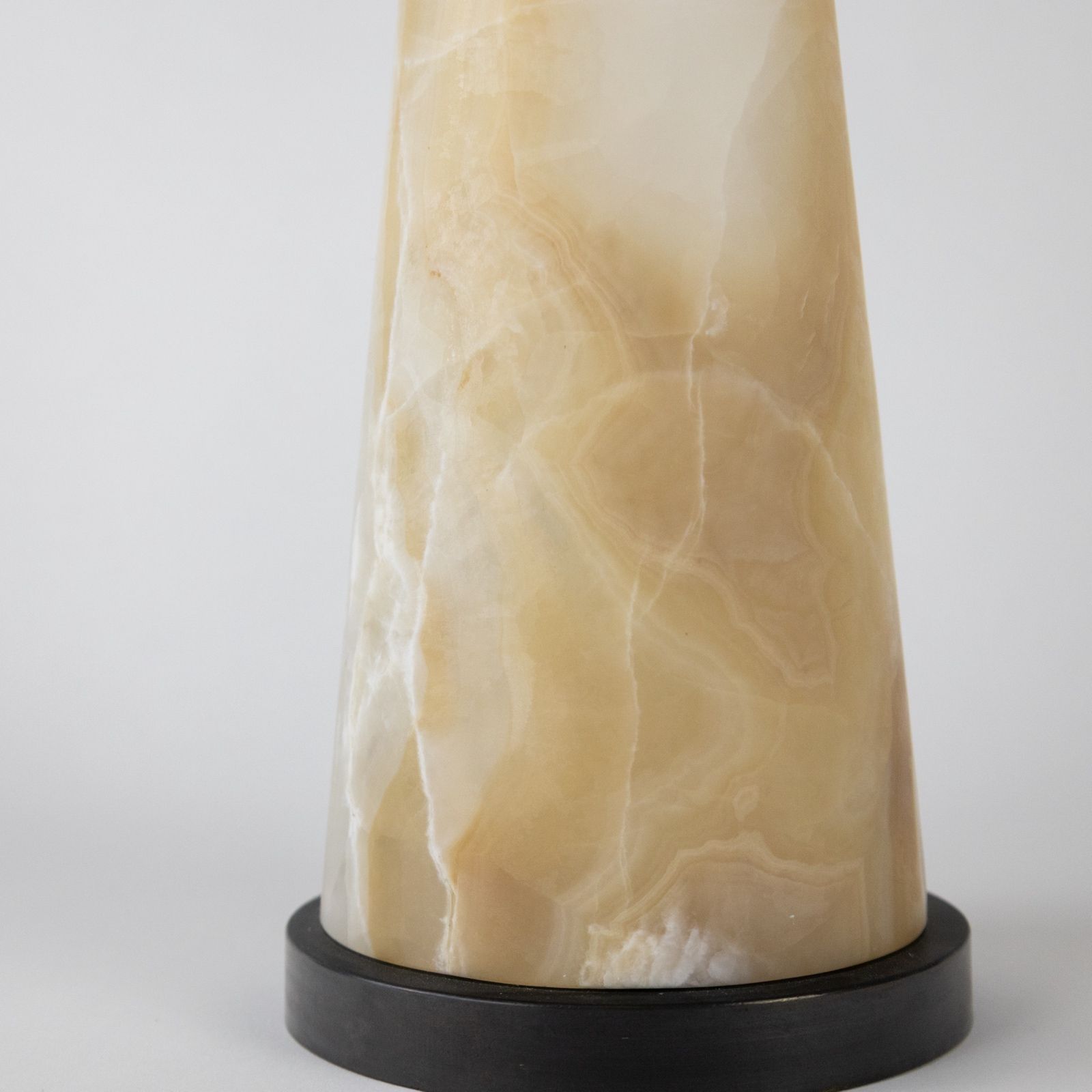 Single Medium Tan Coloured Onyx Cone Lamp On Brown Bronze Base