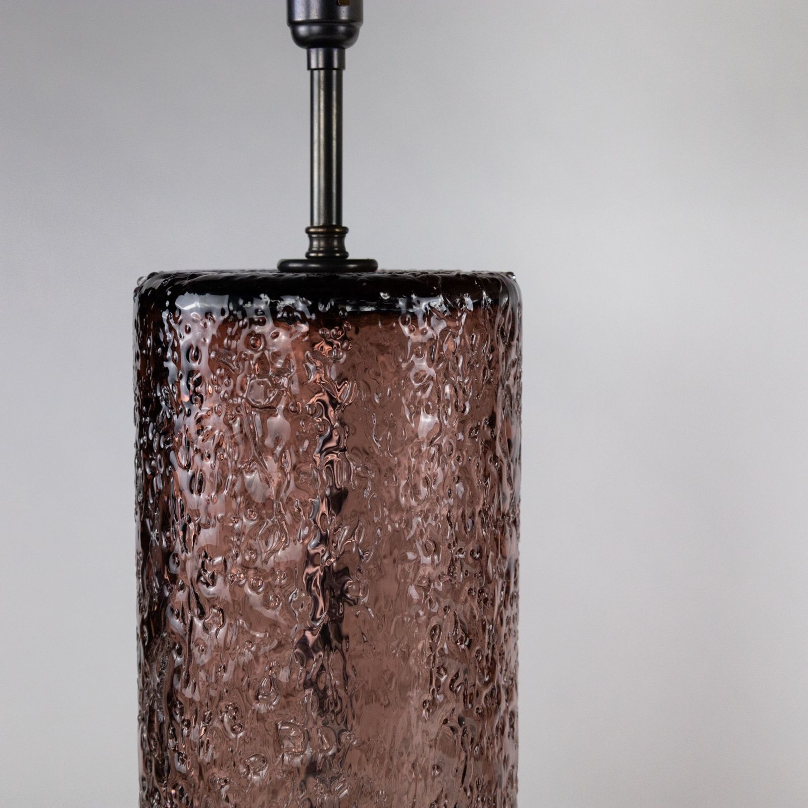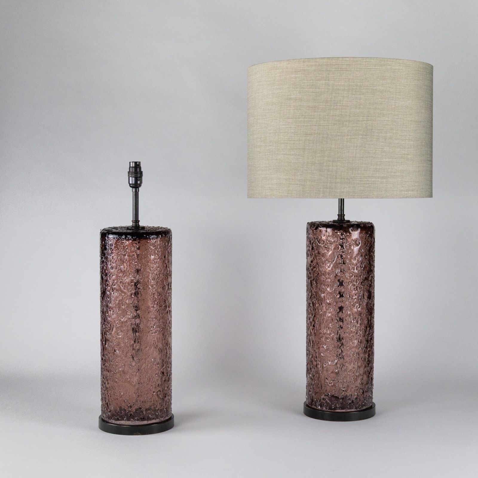 Pair Of Pink Coloured 'Frit' Glass Cylinder Lamps On Brown Bronze Bases