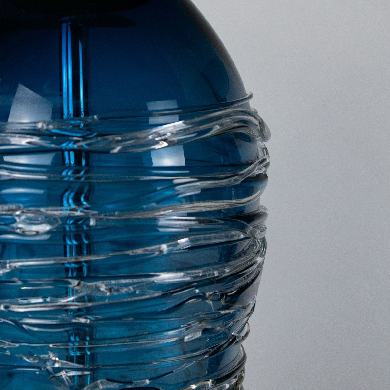 Pair Of Large Blue Glass 'Candy Floss' Lamps On Antique Brass Bases