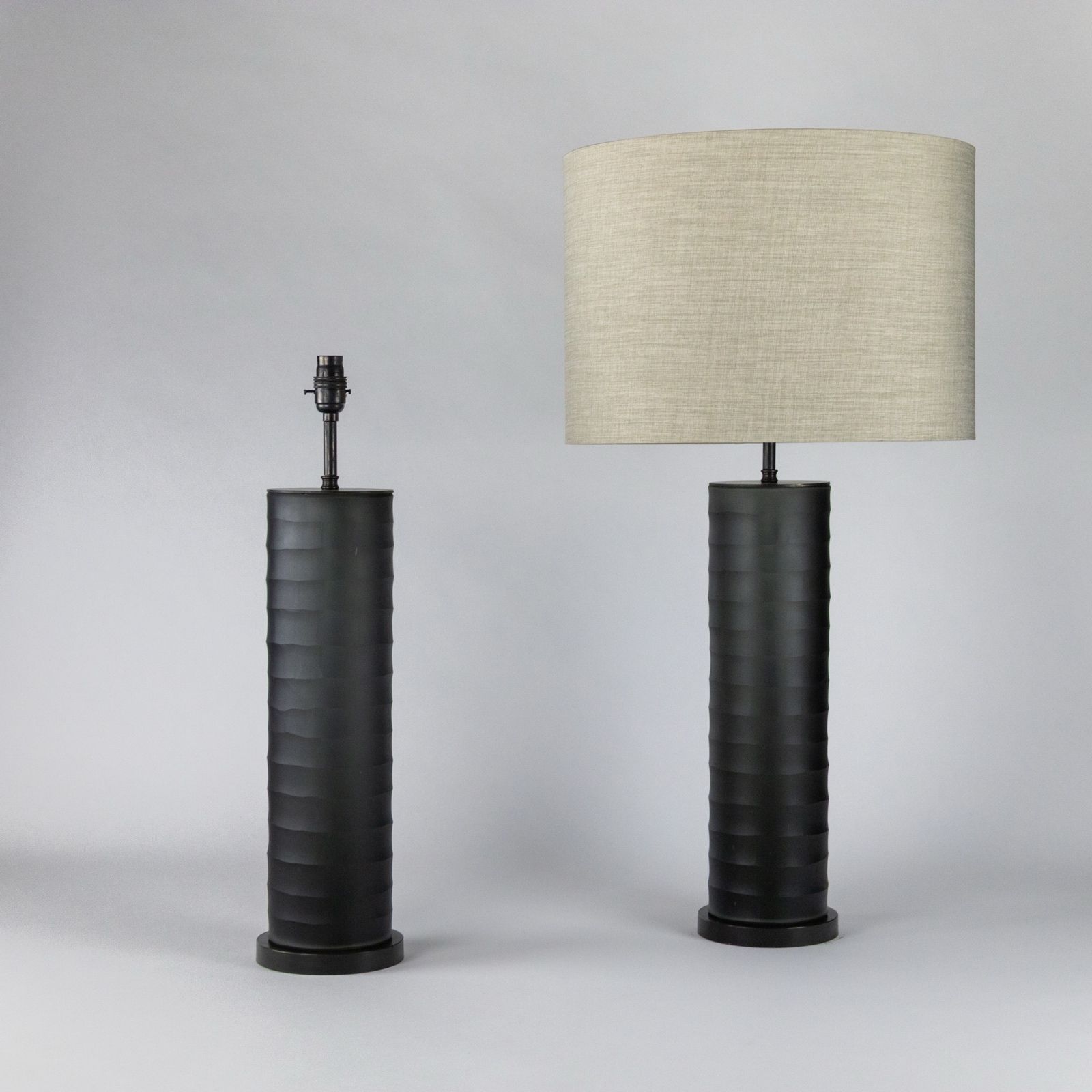 Pair Of Large Grey Cut Glass 'Rolo' Lamps On Brown Bronze Bases
