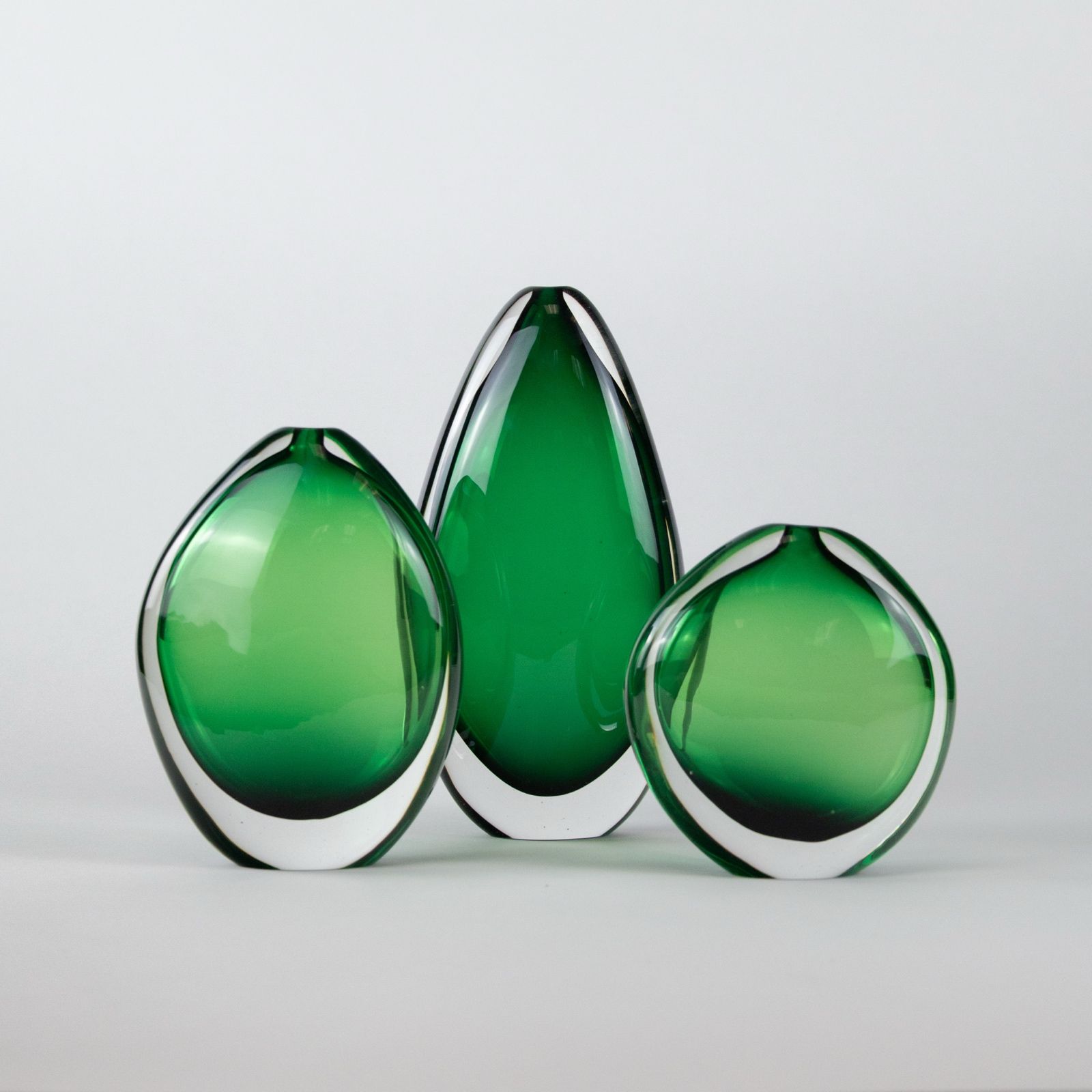 Set of Three Green Coloured Hollie Vases