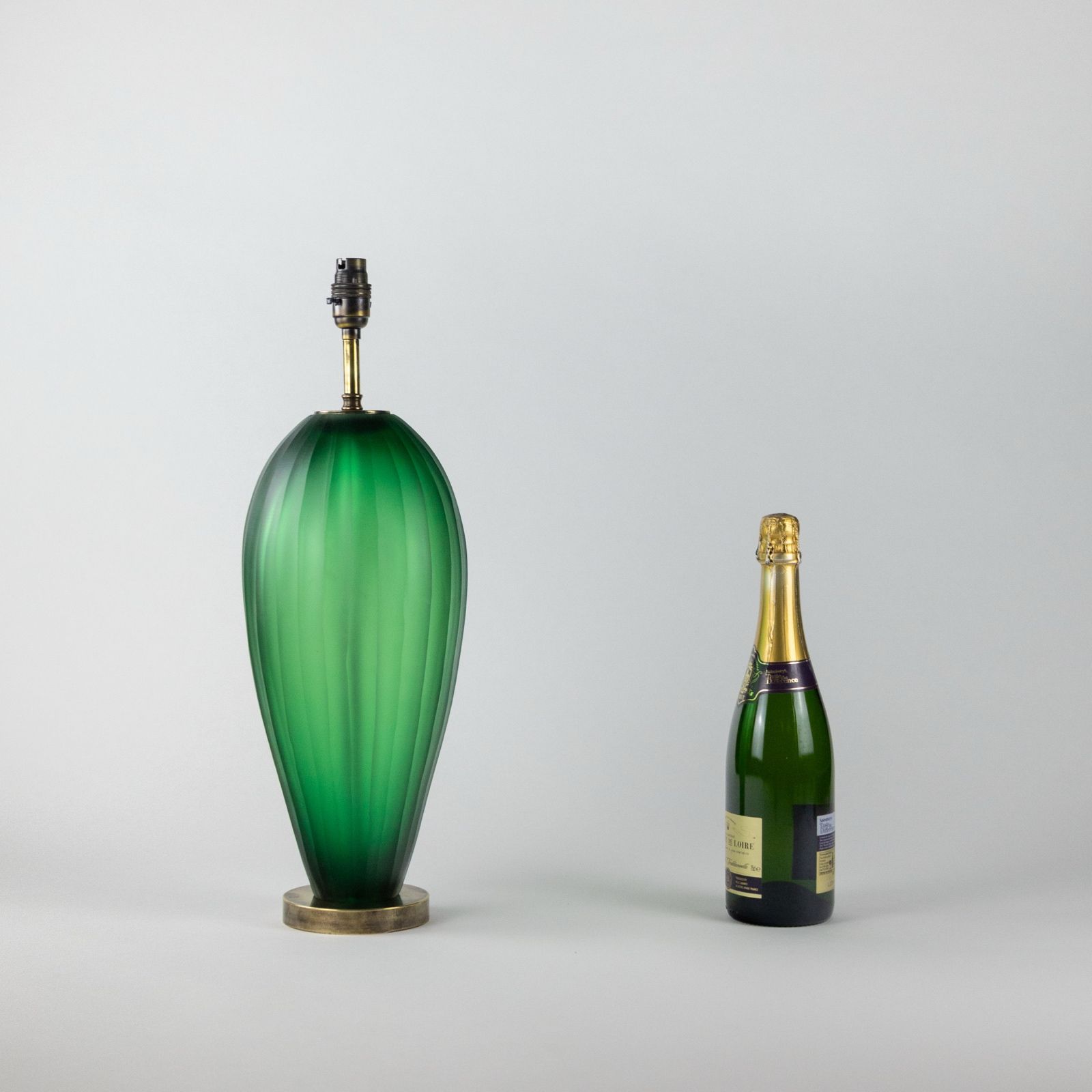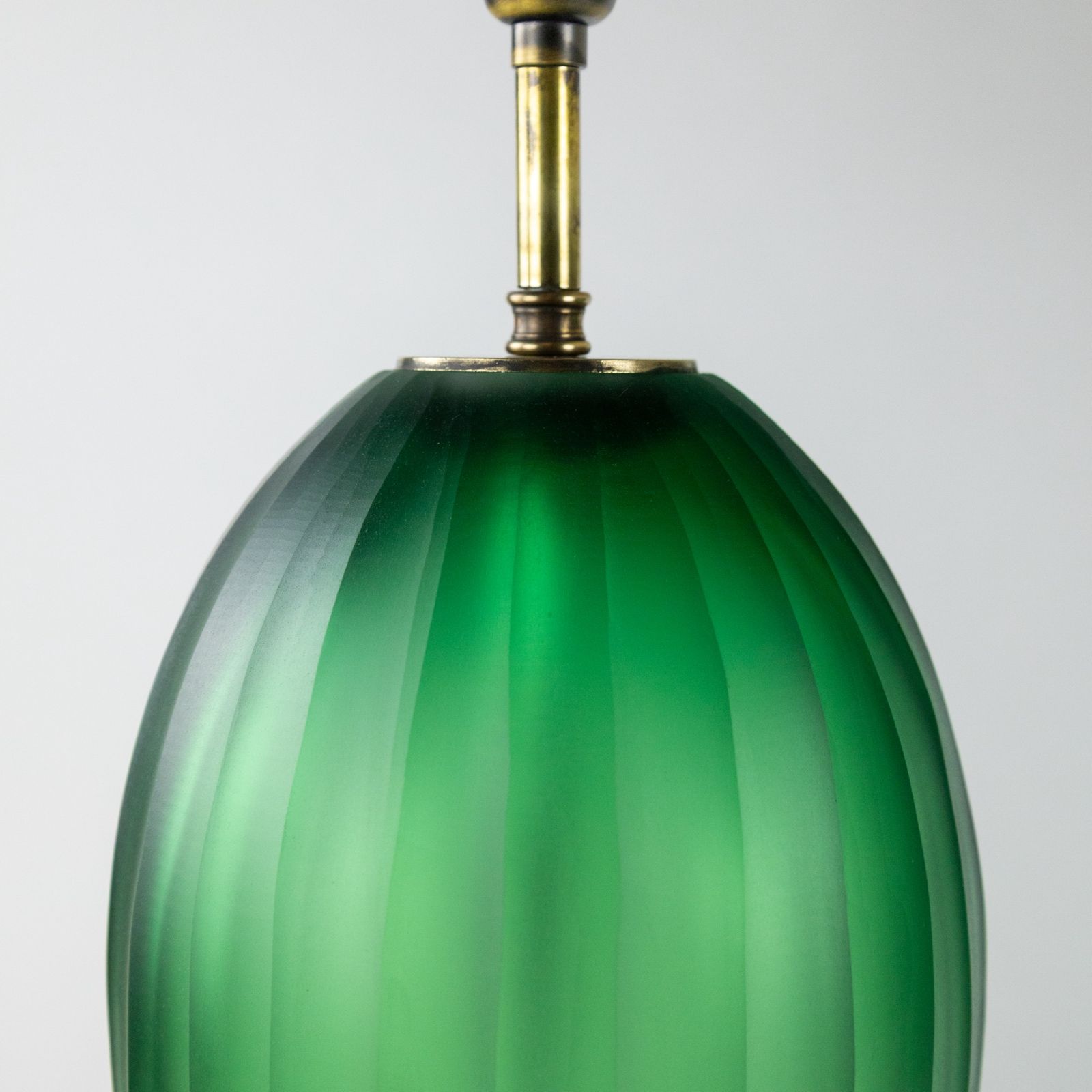 Pair of Medium Green Cut Glass Balloon Lamps on Antique Brass Bases