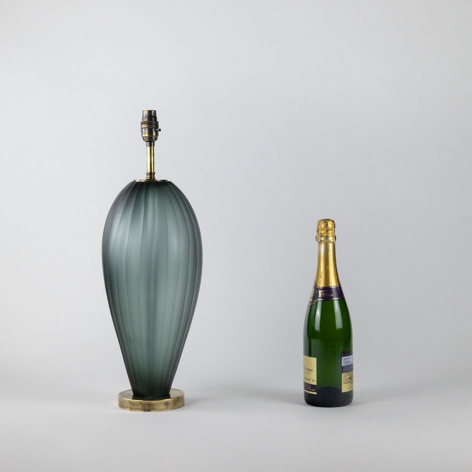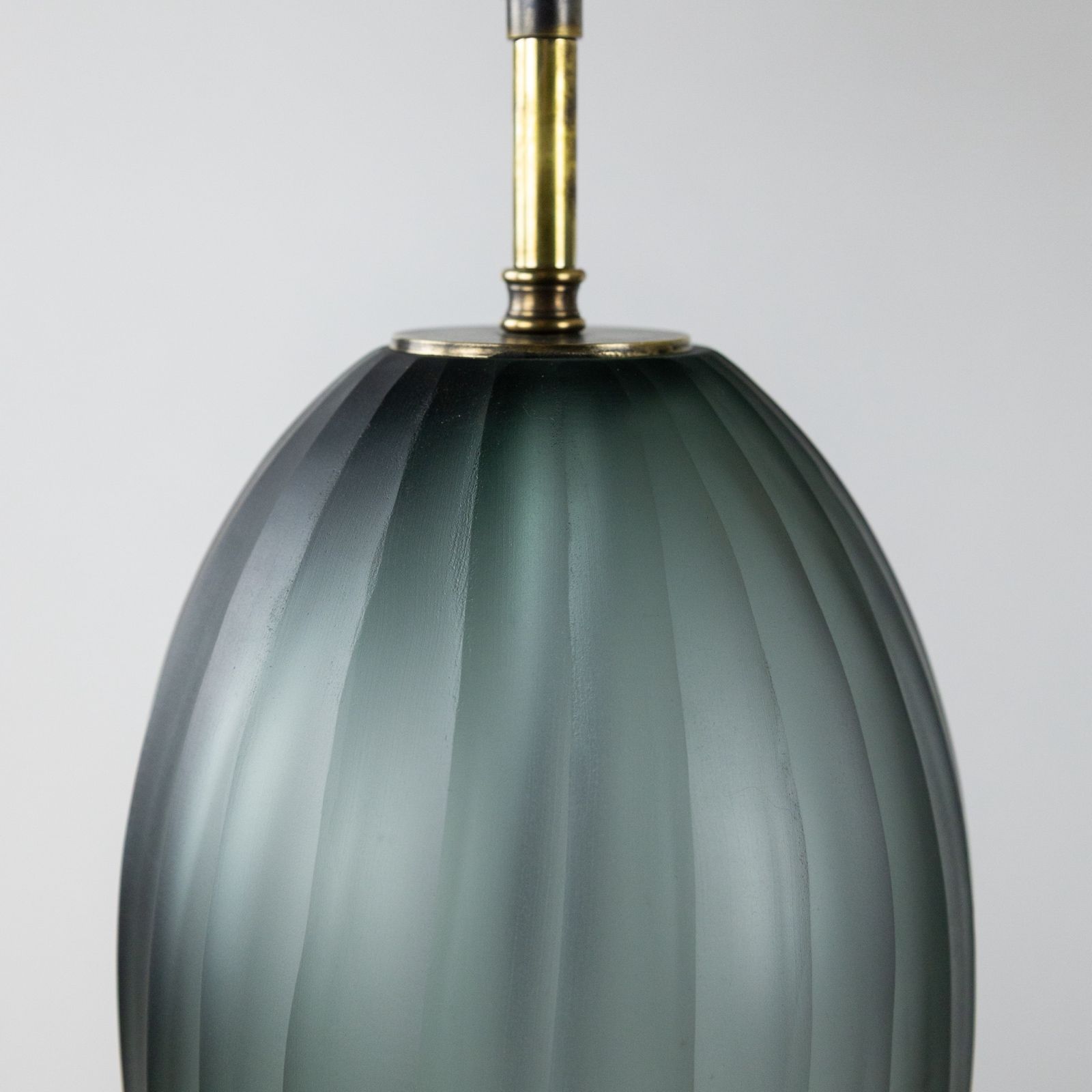 Pair of Medium Grey Cut Glass Balloon Lamps on Antique Brass Bases