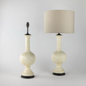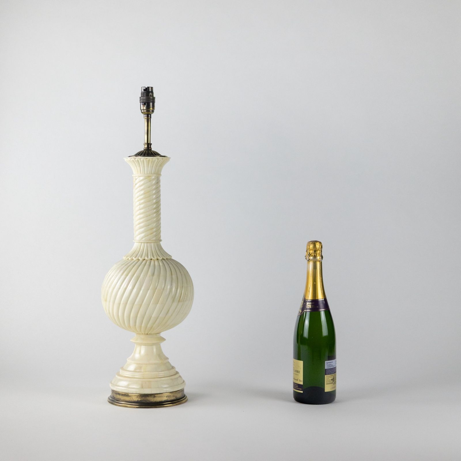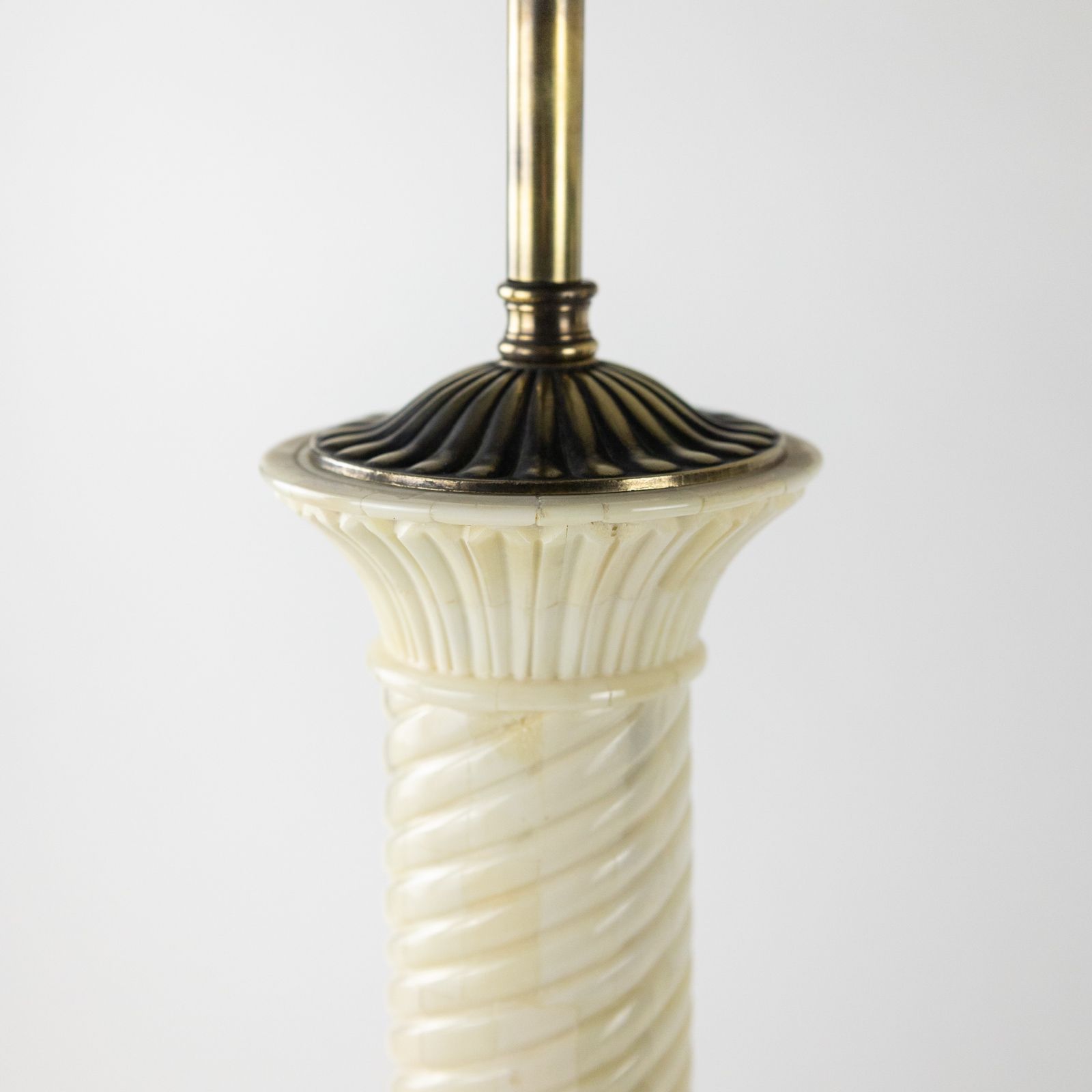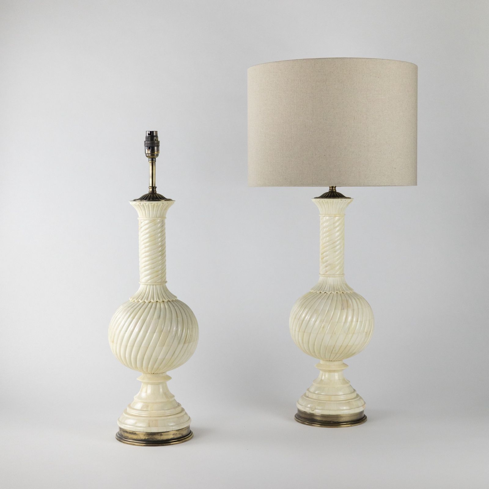 Pair of Carved Camel Bone Urn Lamps on Antique Brass Bases
